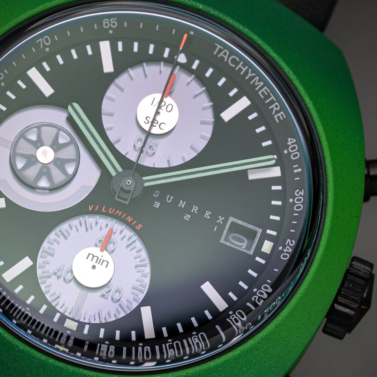 [Racer’s Type Collection] Created in collaboration with ArtNeun, the 321 ArtNeun Edition celebrates the design language and legacy of the iconic rear-engine sports cars that defined a generation. Its Viper Green CERAKOTE-coated case takes inspiration from one of the rarest colorways ever produced, a shade found on only 69 cars and remembered for its bold personality and unmistakable presence. Lightweight, durable, and built with precision timing in mind, this limited release blends automotive heritage with the clean, functional design Sunrex is known for.