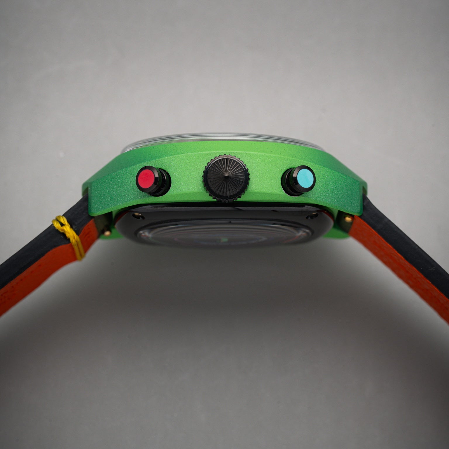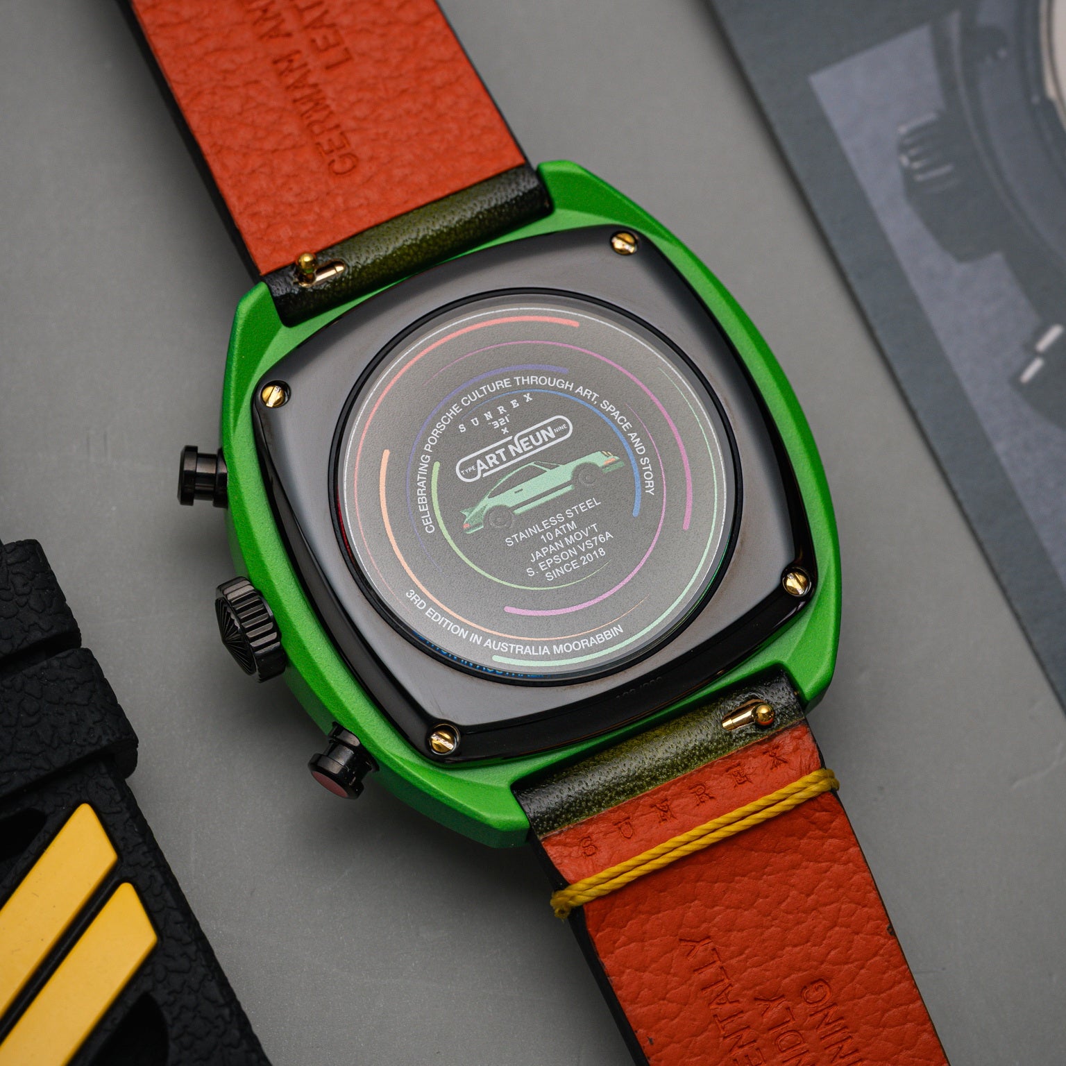 In collaboration with ArtNeun, a vibrant celebration of the iconic rear-engine sports car lineage through art, space, and story, we proudly present the "321" (ArtNeun Edition). This exclusive timepiece pays homage to the rare and iconic rear-engine rear wheel drive sports car in Viper Green—with only 69 ever produced in this striking color.