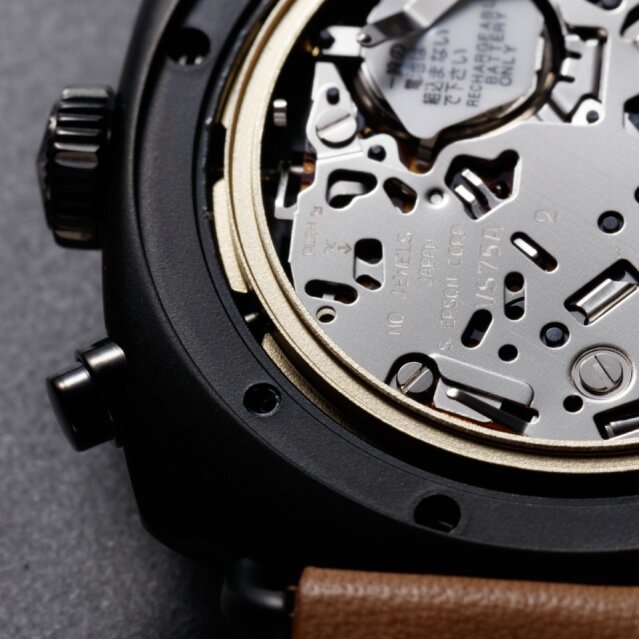 - Movement: Epson VS75A light-powered quartz, holds up to 5 months of charge